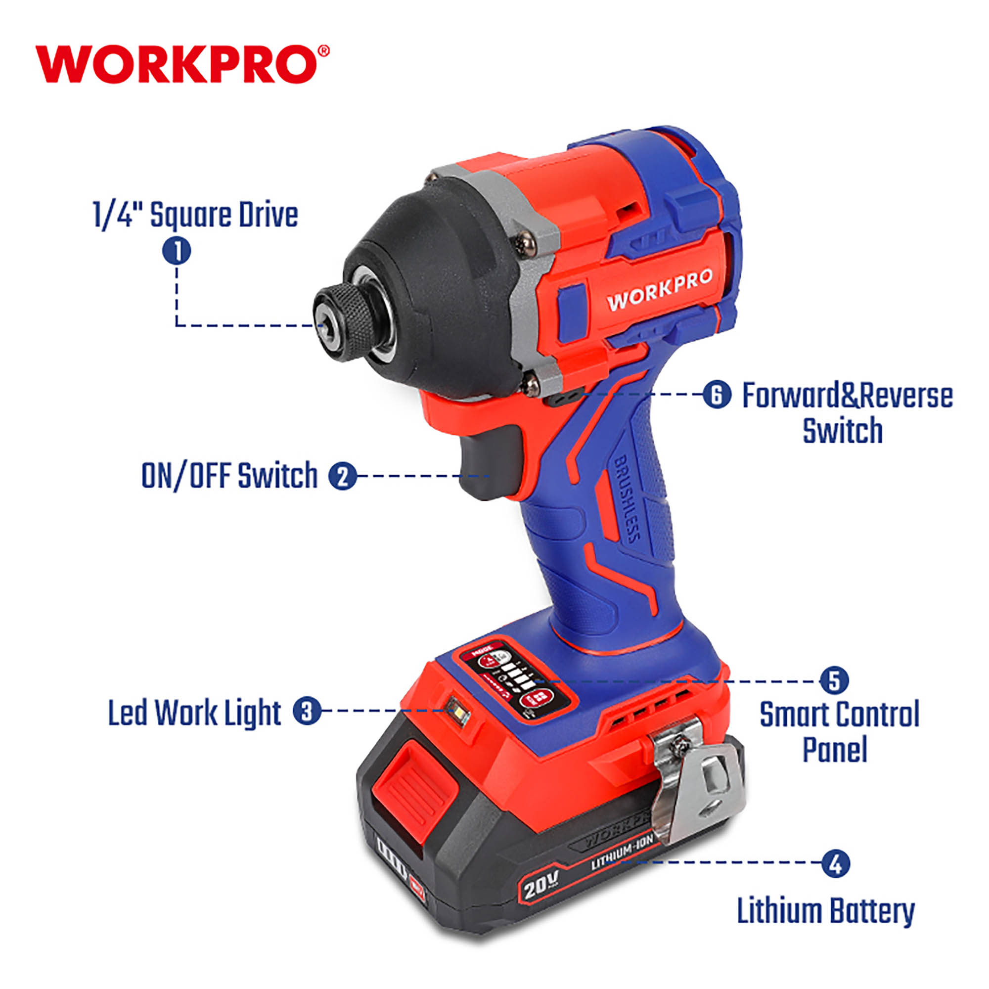Επαναφορτιζόμενο κατσαβίδι παλμικό 20V-Li BL (1×2,0AH) WP390106 WORKPRO (PROFI PLUS)