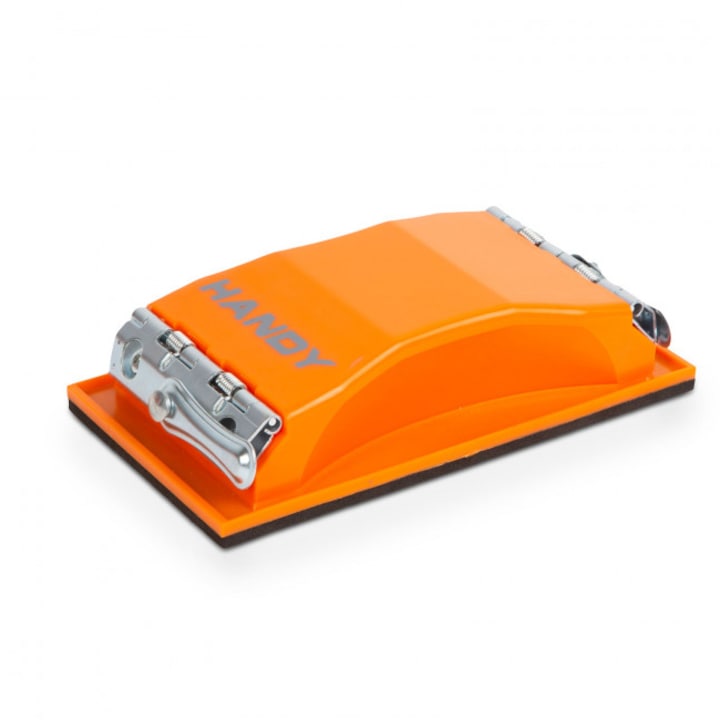 Διαθέτει ειδικά, μεταλλικά κλιπς στις δυο πλευρές της, για ασφαλή σύσφιξη των φύλλων λείανσης. Δεν έχει λαβή.Είναι κατασκευασμένη από πλαστικό και είναι ιδανική για εργασίες φινιρίσματος.
